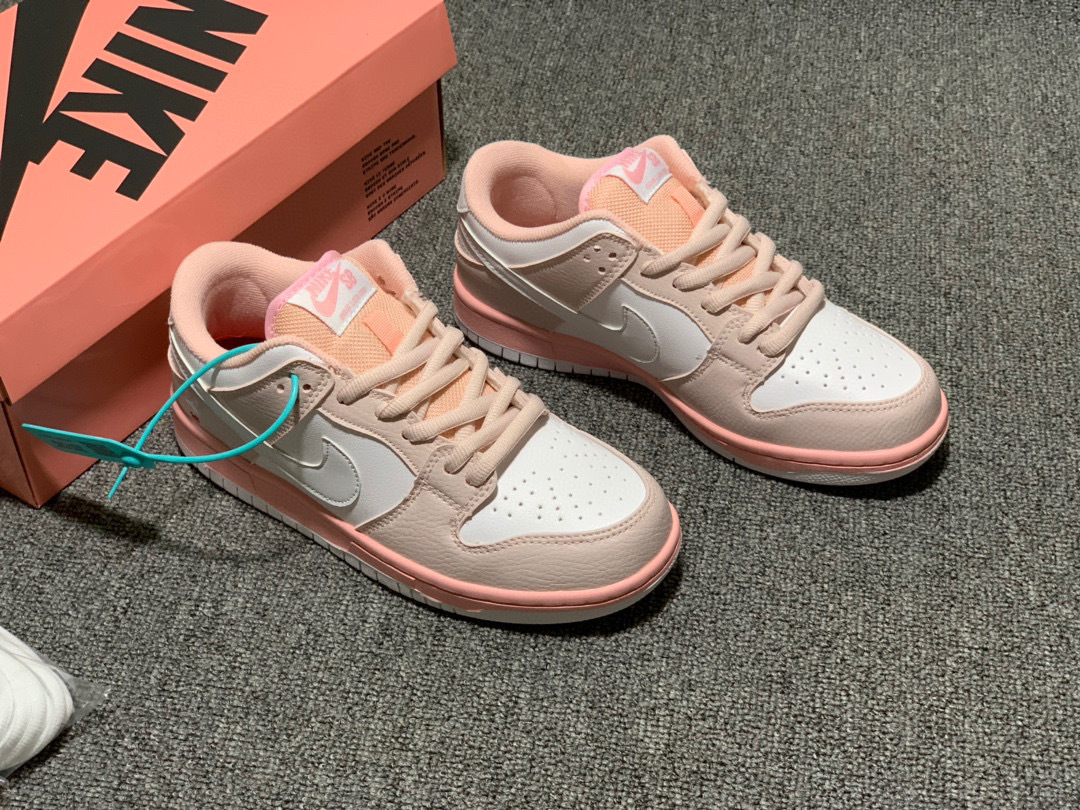 Nike Pink/White Pigeon SB Dunk Low sneakers offer a refreshing and soft aesthetic that stands out in any high-end streetwear collection. These shoes feature a premium tumbled leather upper in a delicate pastel pink hue, perfectly balanced by crisp white mid-panels and a matching white Swoosh. Additionally, the iconic pigeon embroidery on the lateral heel adds a touch of legendary urban heritage to this specific colorway. Furthermore, the plush interior lining and padded tongue ensure that your feet remain comfortable during long hours of city exploration or casual outings. Consequently, you can enjoy a high-fashion look without sacrificing the practical support required for daily wear. Moreover, the durable rubber midsole is finished in a vibrant salmon pink tone, providing a beautiful tonal contrast that draws the eye downward. This design choice highlights the intricate stitching and quality craftsmanship found throughout the entire silhouette. Finally, the classic circular traction pattern on the outsole offers reliable grip, making these sneakers as functional as they are fashionable. Whether you are a dedicated collector or simply looking to brighten your wardrobe, these shoes deliver a perfect blend of sweetness and street credibility.