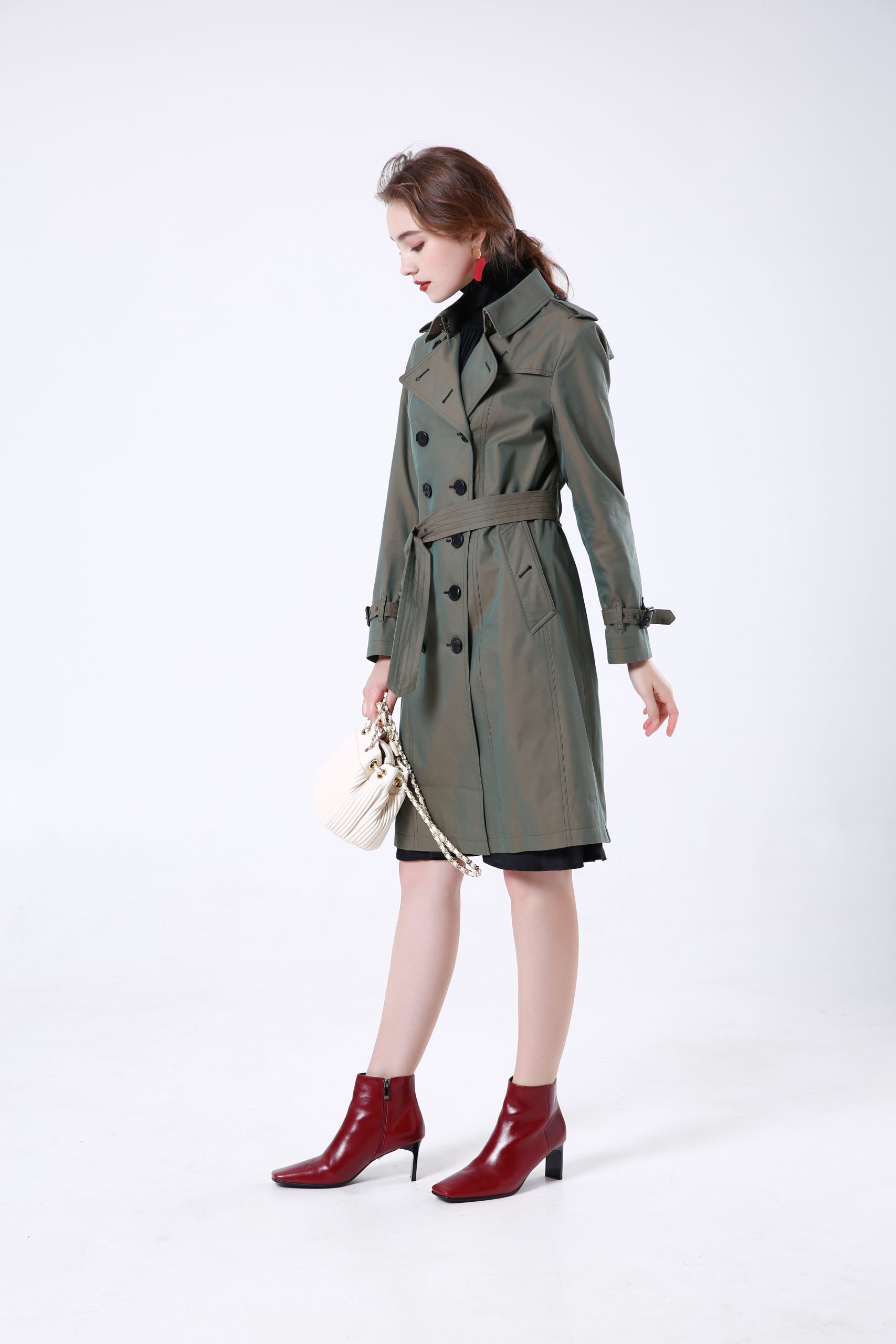 The coat’s design honors the traditional trench legacy while providing a clean, modern fit. It features a commanding double-breasted front and a structured turn-down collar that can be popped for added protection. Military-inspired accents such as the epaulets and storm flaps provide visual depth and functional durability. The silhouette is defined by a coordinating waist belt with a premium leather buckle, allowing for a personalized, cinched fit. Additional features include deep insert pockets, a single rear vent for ease of movement, and adjustable sleeve straps. Every detail reflects a commitment to premium craftsmanship, making it a dependable choice for both professional and casual styling.