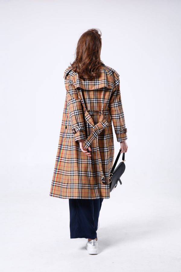 Be the first to review “Rainbow Stripe Checkered Cotton Trench Coat”